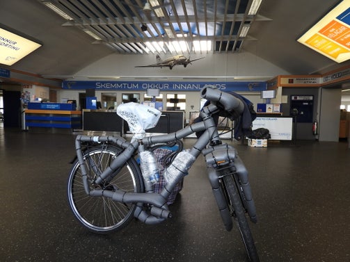 De luchthaven van Reykjavik is bereikbaar met bus 4 (info 2015), de fiets kan gratis mee op de stadsbussen.